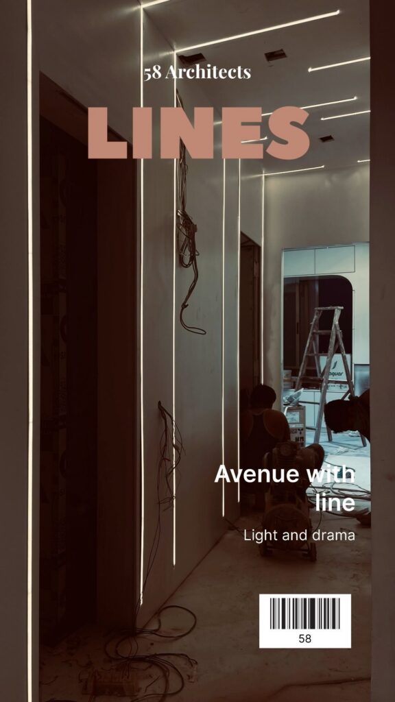 A dramatic passageway enhanced with linear lighting that adds depth and movement. This design explores the interplay of light and architecture.